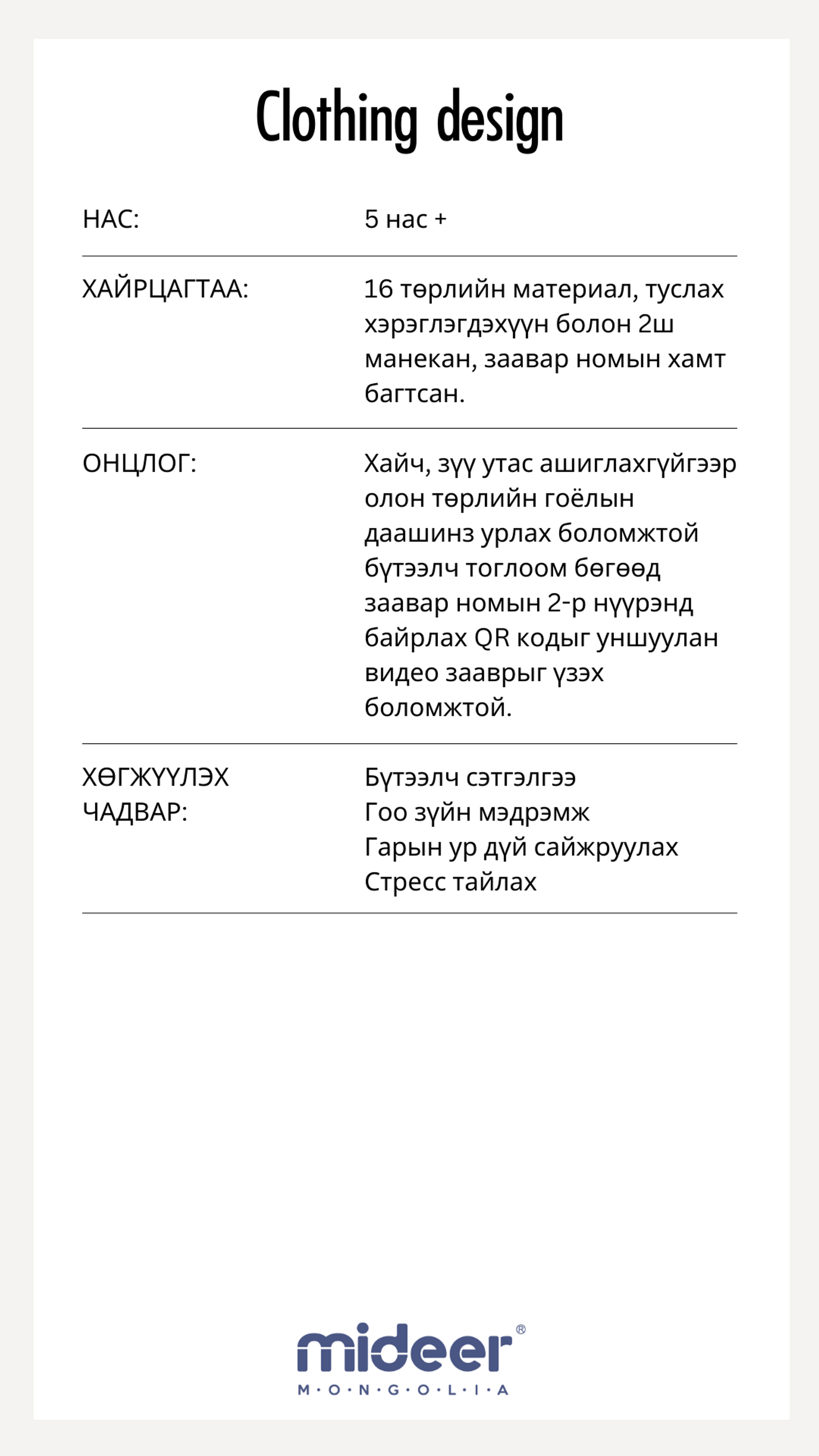 ГОЁЛЫН ДААШИНЗ УРЛАЯ - CLOTHING DESIGN