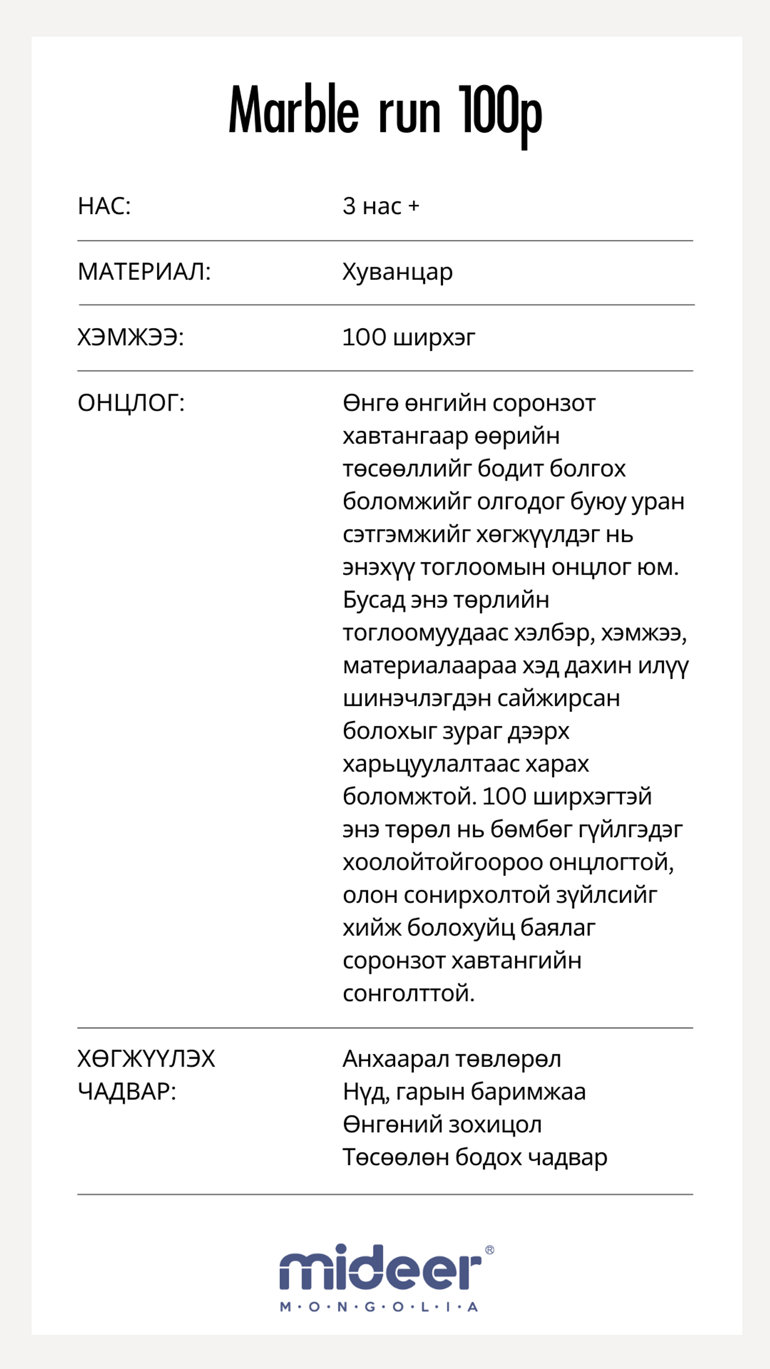 Бүтээгдэхүүний тайлбар