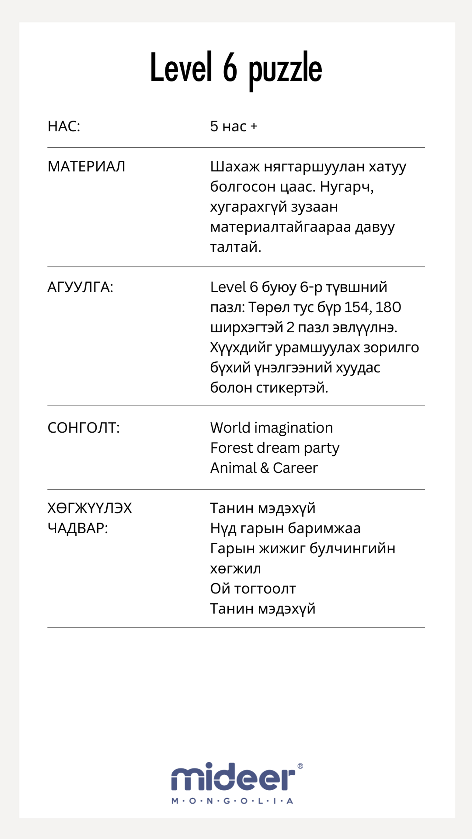 LEVEL 6 /5 нас +/ PUZZLE SET | Genie - Curated for kids