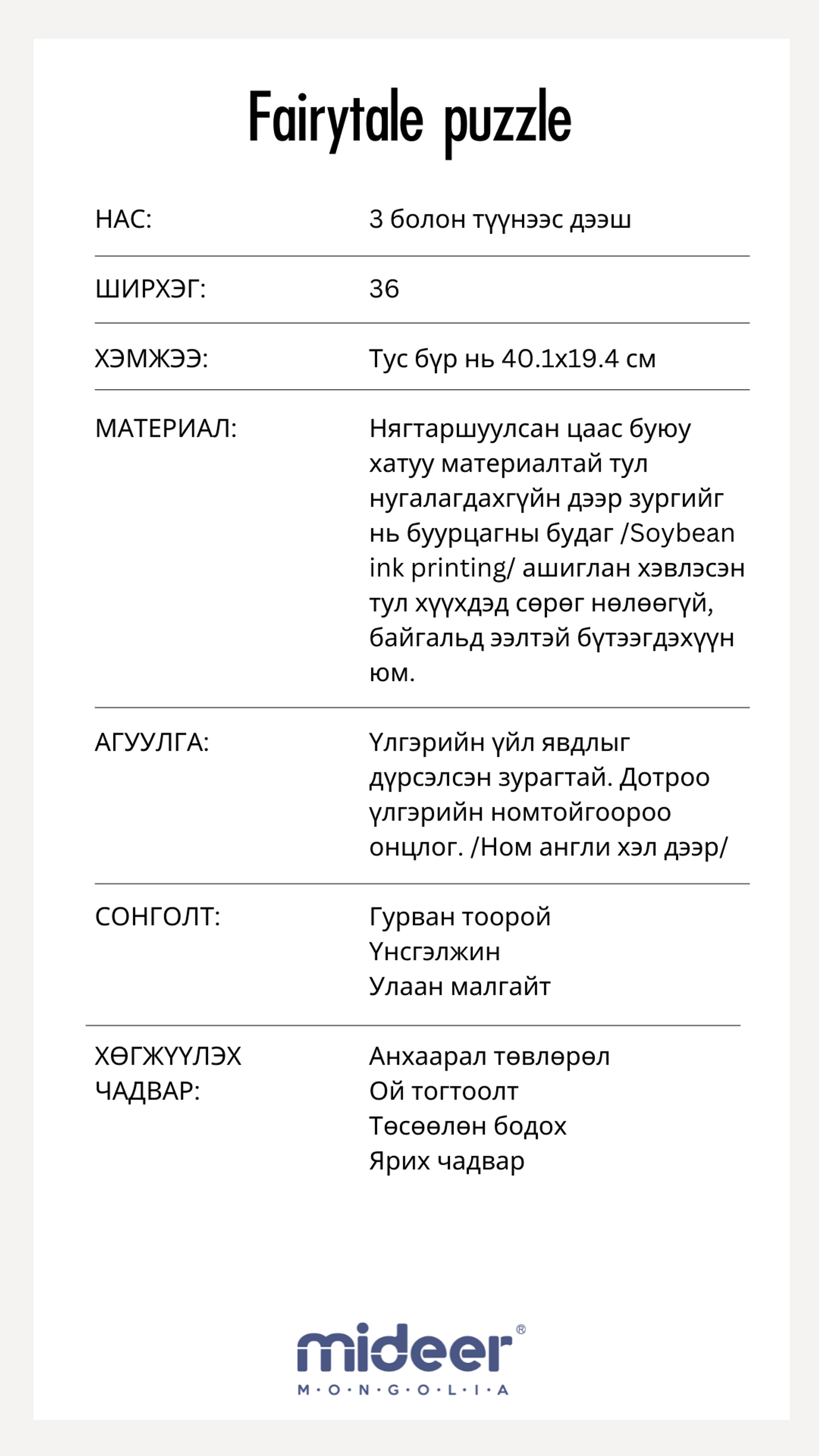 Бүтээгдэхүүний тайлбар