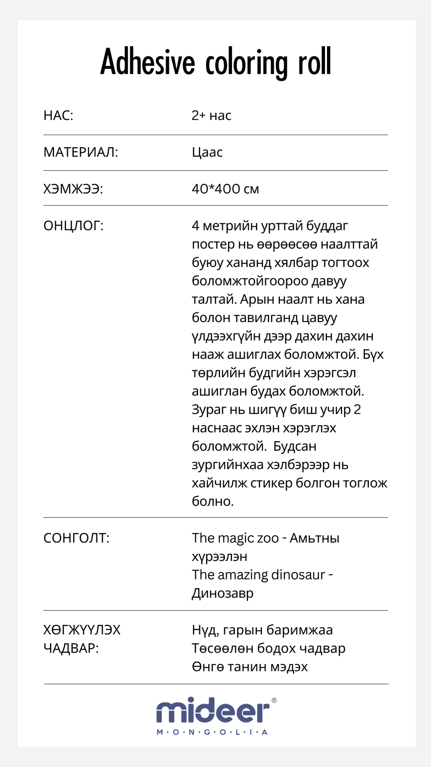Бүтээгдэхүүний тайлбар
