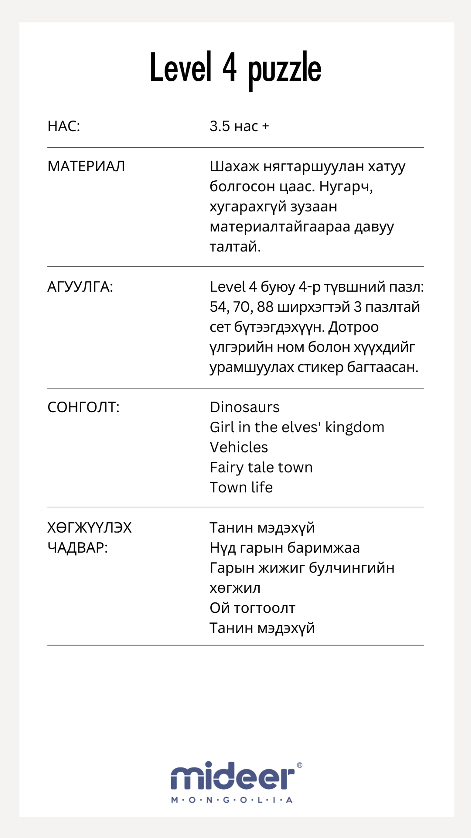 LEVEL 4 /3,5 нас+/ PUZZLE SET