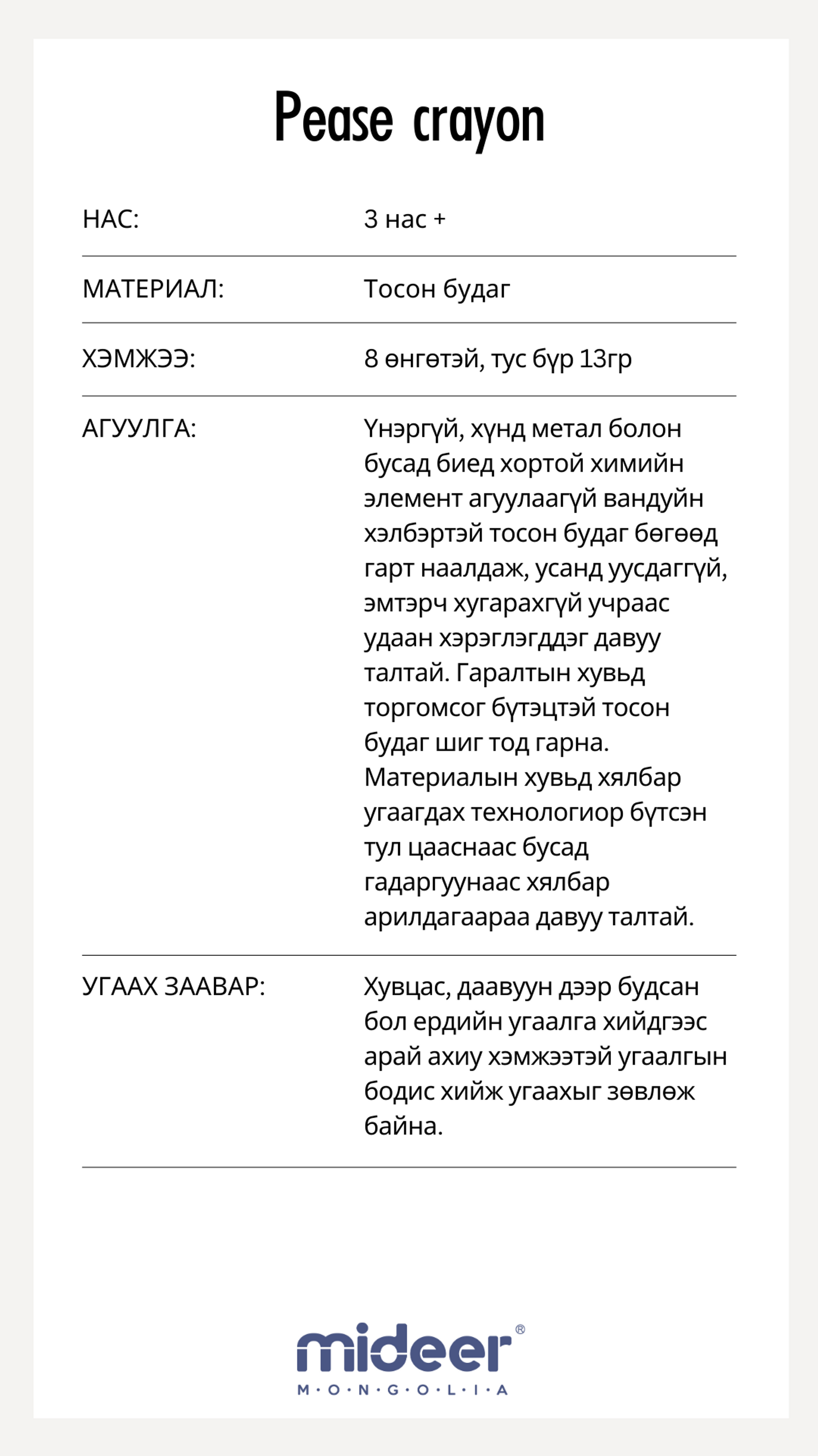 ВАНДУЙН БУДАГ - PEASE CRAYONS