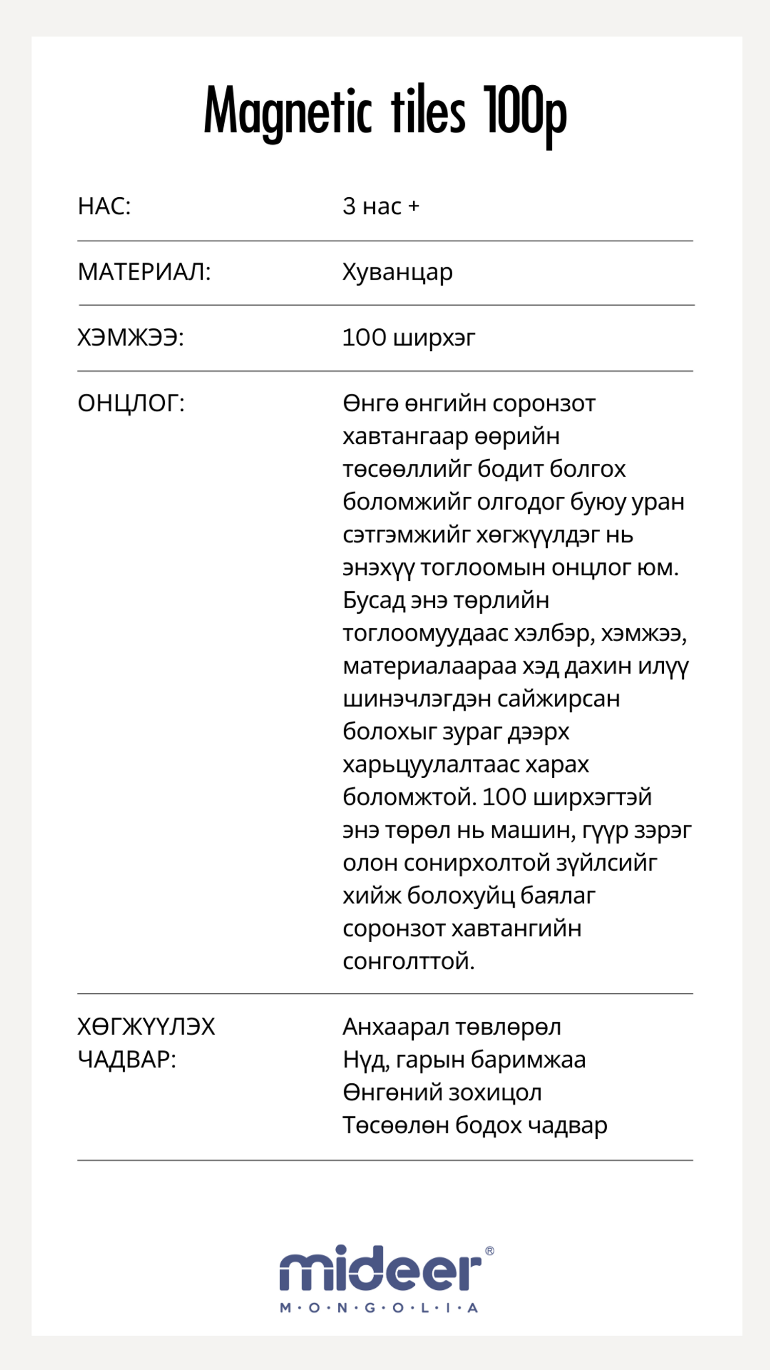 СОРОНЗТОЙ ТОГЛООМ - MAGNETIC TILES 100P